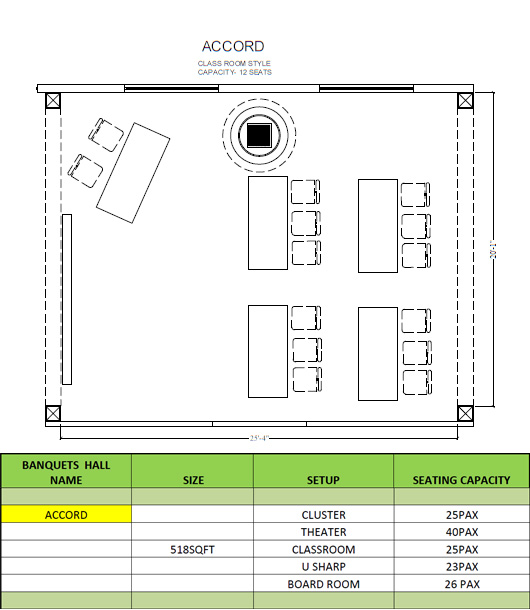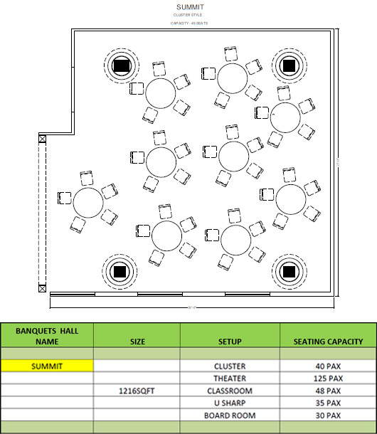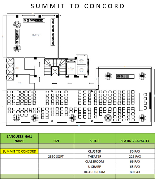 From the start, you'll find a dedicated team of concierge and the specially trained caterers along with our event planners to plan everything meticulously for you. You could choose from SUMMIT, ACCORD, CONCORD, COUNCIL, MIND SPACE or a combination of them all based upon your need.
